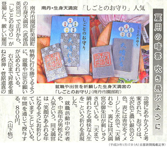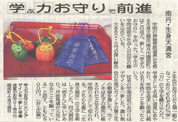 日本最古の天満宮と称され、歴史的評価の高い生身天満宮は、テレビ、ラジオ、新聞などのメディアでも数多くご紹介頂いています。また、当宮に現存する貴重な文化財を様々な展覧会へ出展しています。